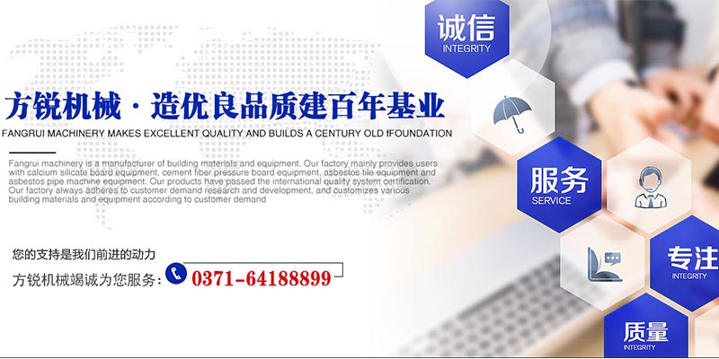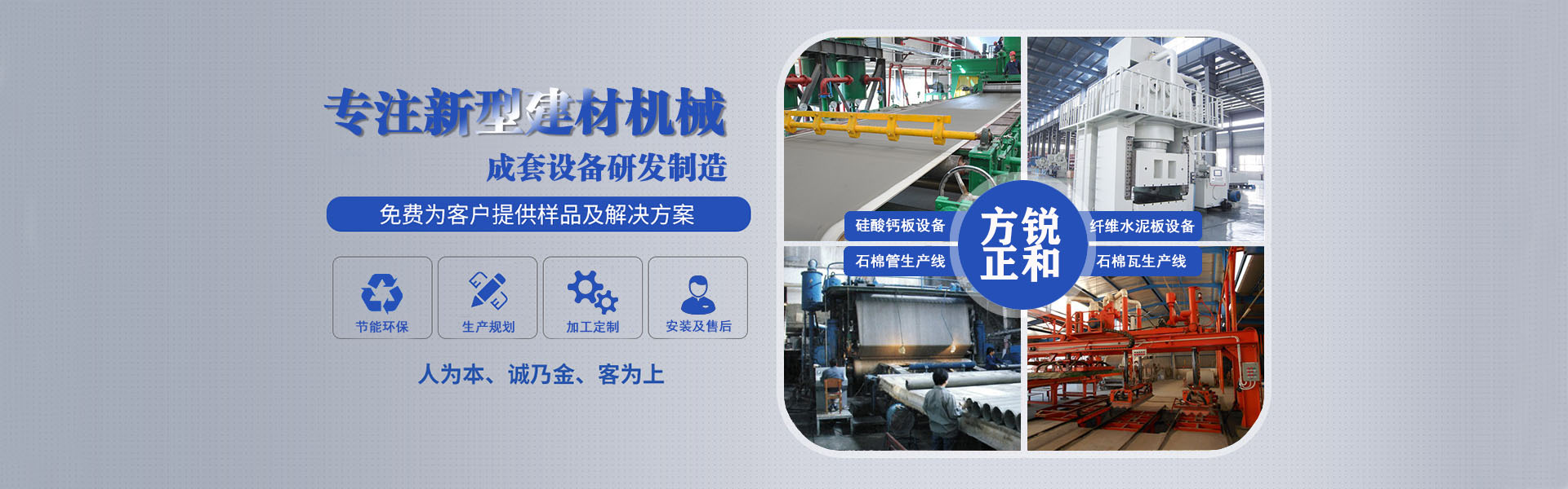 歡迎來到鄭州方銳正和機械制造有限公司網站!主要生產:石棉瓦設備,石棉管設備,石棉板設備,石棉瓦生產線,硅酸鈣板設備,水泥纖維板設備等新型建材成套設備,歡迎各界朋友前來咨詢洽談業務!